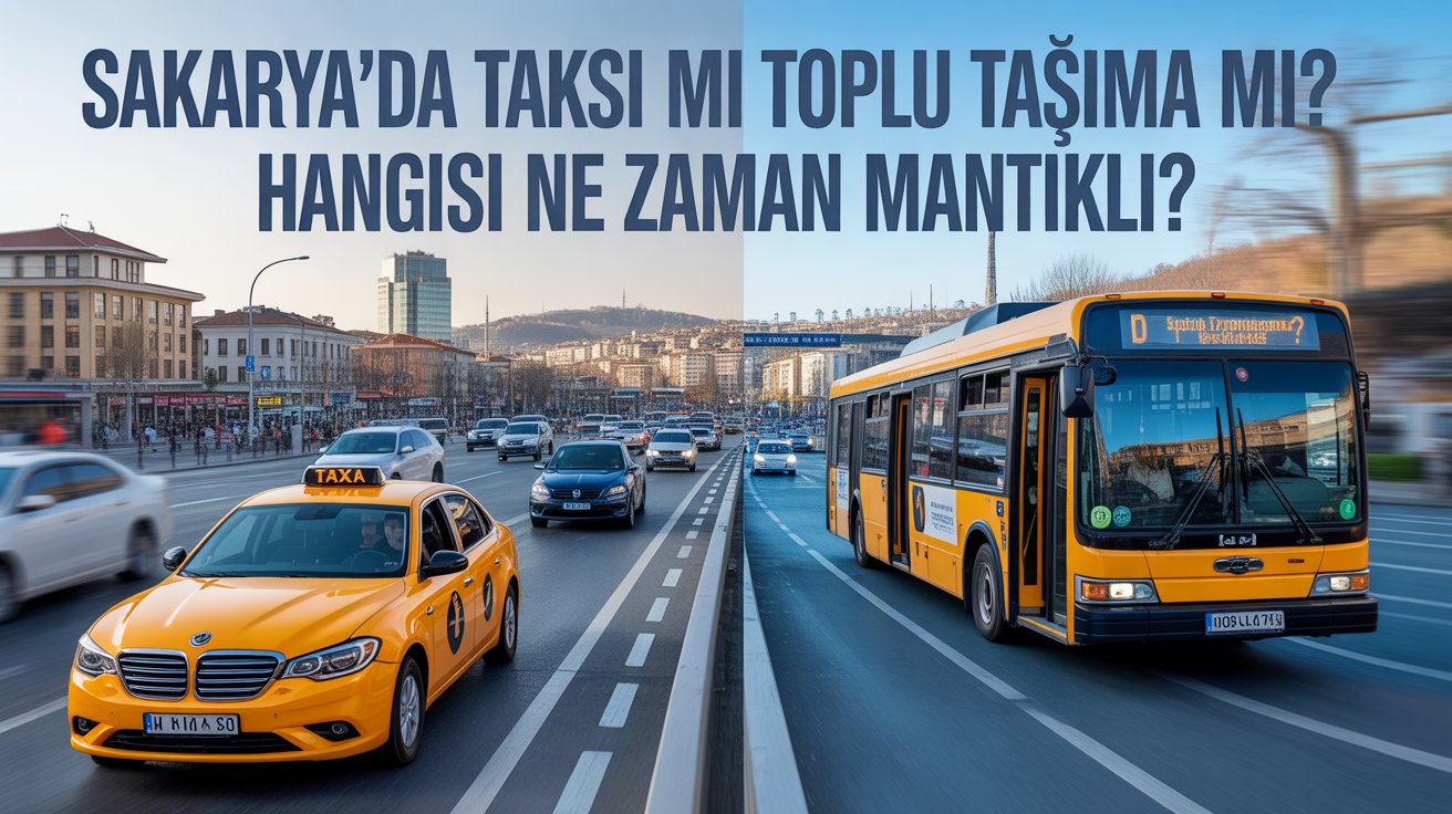 Sakarya’da taksi mi, toplu taşıma mı sorusunun cevabı duruma göre değişir. Genel olarak ekonomiklik açısından toplu taşıma daha avantajlıdır. Şehir içi hatlarda son ücret artışlarıyla belediye otobüs ve dolmuş ücreti 30 TL’dir. Taksinin ise açılış ücreti 25 TL, km başı 24 TL’dir; uzun yolculuklarda bu hızlı yükselir. Ancak vakit ve konfor öne çıktığında taksi tercih edilebilir. Örneğin erken saatte ulaştırmakta problem olan bir yere hızlıca gitmek, çok bagajla yolculuk yapmak, birden fazla kişiyle birlikte hareket etmek veya engelli bir yolcu taşımak gerektiğinde taksi mantıklı olur. Yeni ulaşım yatırımları (metrobüs, Adaray) ile toplu taşıma eskiye göre hızlılıkta taksiye yaklaşmıştır; bu hatlar üzerindeki seyahatlerde artık taksiyle rekabet edebilecek sürelere ulaşılmıştır.